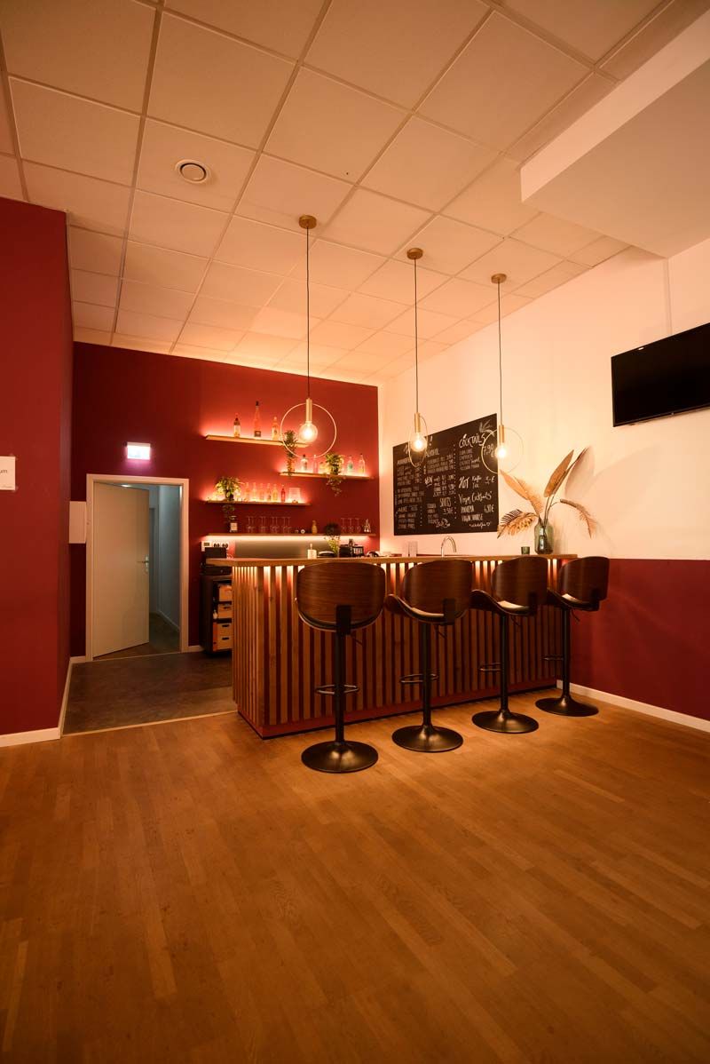 Eine gemütliche Stimmung bietet Ihnen unsere Lounge. Als „Foyer“ für die beiden großen Räume nutzbar, für einen Sektempfang, ein Buffet oder eine kleine Party.